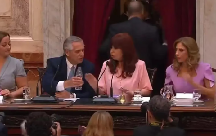 La embestida presidencial contra la Justicia arrancó a pocos minutos de iniciar su mensaje. Fue cuando condenó el ataque sufrido por la vicepresidenta Cristina de Kirchner en setiembre pasado, al que calificó como el “episodio más desgraciado” que sufrió la democracia argentina en sus últimos 40 años. Fue el primero de varios guiños que el presidente Fernández le dedicó a la vicepresidenta, con quien no se veía desde aquel atentado. Sin embargo Cristina, inmutable, sólo le devolvió gestos de frialdad.