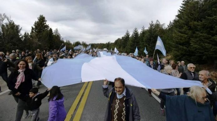 En medio del conflicto mapuche por la toma de más de 40 hectáreas en Río Negro, los vecinos de San Carlos de Bariloche y Villa Mascardi marcharon este domingo por la tarde bajo el lema “Basta de terrorismo en la Patagonia”.
