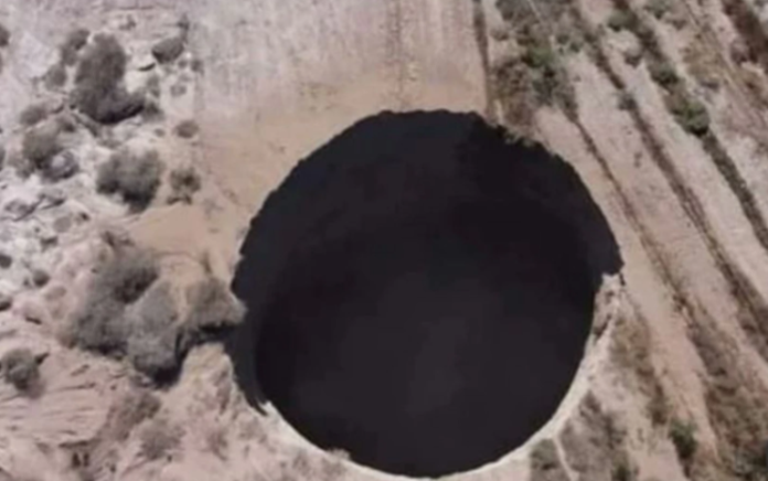El agujero de grandes proporciones está en en las inmediaciones de Mina Alcaparros, en Tierra Amarilla, región de Atacama, y preocupa porque continúa en crecimiento.