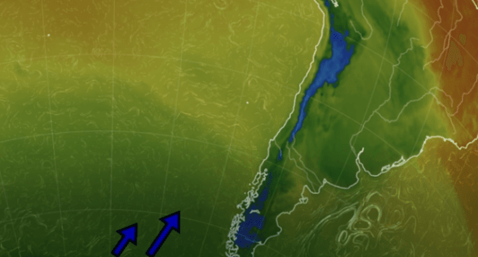El viento sur estará provocando el descenso de la temperatura de manera paulatina en toda el área central, y para el martes 20, estará alcanzando a todo el norte del país. La circulación de viento sur estará trayendo aire muy frío.
