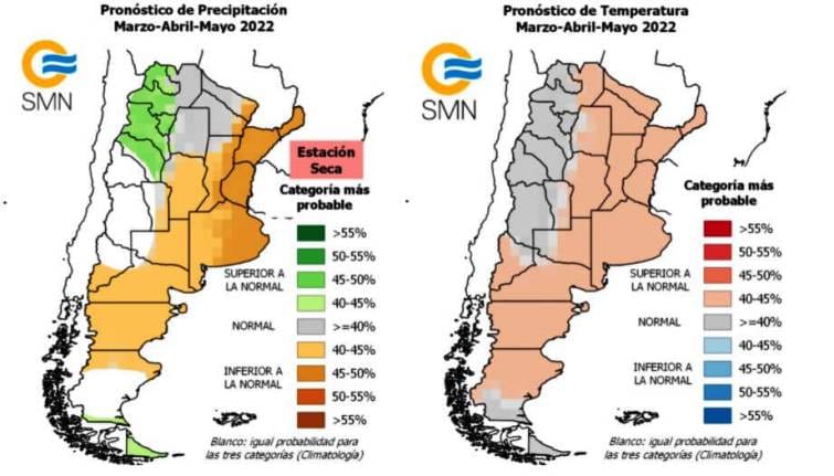 Según la Organización Meteorológica Mundial, en el período marzo-mayo la probabilidad de acción de La Niña es del 65%. El Servicio Meteorológico aguarda un trimestre con lluvias por debajo de lo normal.