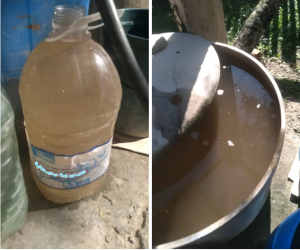 “Estamos indignados por la pésima calidad del agua que nos trajeron los camiones municipales, prácticamente agua podrida; con esa agua llenaron los tanques comunitarios que la municipalidad tiene distribuidos en varios lugares y desde donde a diario nos surtimos tanto para beber como para la limpieza de la casa, los enseres y nuestro aseo personal”, expresó.
