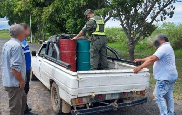 Como resultado de controlar una camioneta, los uniformados detectaron dos tambores que contenían 190 litros de gasoil cada uno.