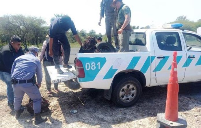 Al conductor se le solicitó las documentaciones obligatorias para circular, exhibiendo sólo cédula de identificación de vehículo. En ese momento, los uniformados advirtieron que en la caja transportaba un animal vacuno faenado con cuero y pelaje negro, que presentaba varios cortes en el cuero y la carne estaba despresada; situación que llamó la atención de los auxiliares de la justicia.