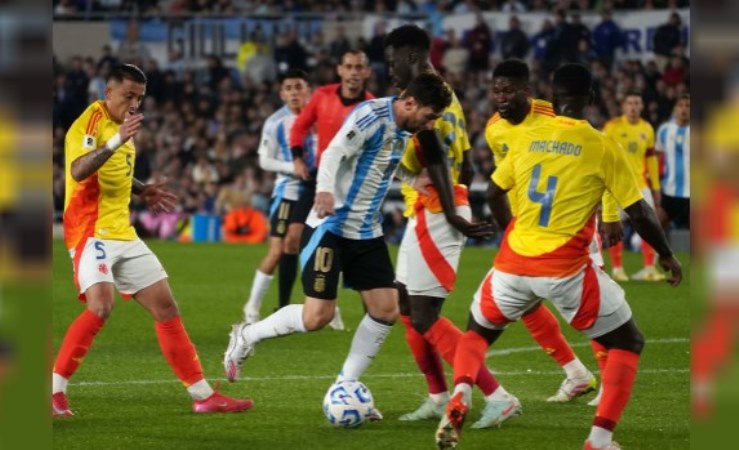 .Cambios en el segundo tiempo: al inicio Nicolás González por Rodrigo De Paul (A); al inicio Giuliano Simeone por Nahuel Molina (A); 12m Andrés Román por Jaminton Campaz (C); 28m Rafael Carrascal por James Rodríguez (C); 28m Jhon Arias por Kevin Castaño (A); 33m Exequiel Palacios por Lionel Messi (A); 33m Juan Foyth por Facundo Medina (A); 45m Leonardo Balerdi por Thiago Almada (A)./NA