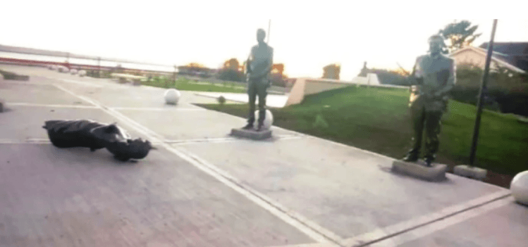 El monumento de la ex presidenta estaba ubicado junto a otras estatuas de ex mandatarios de la democracia. Fue arrancada y quedó sobre el asfalto.