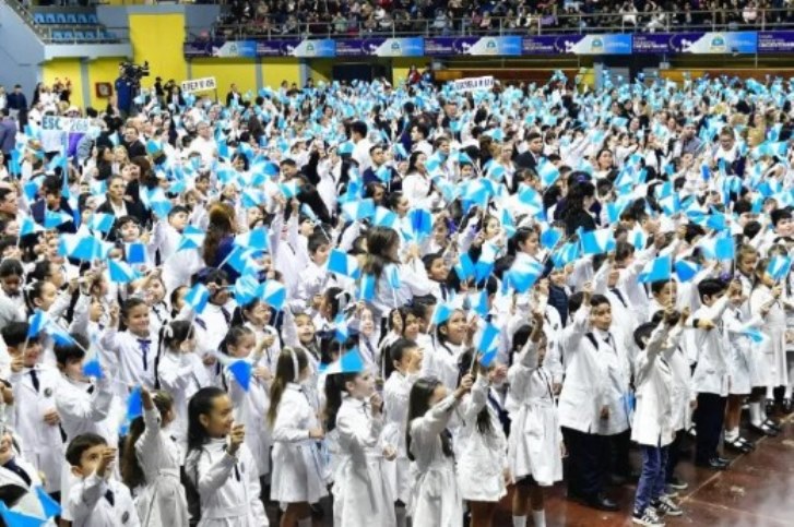 Este miércoles 8 de abril, el gobernador Gildo Insfrán encabezó la toma de promesa de lealtad a la Bandera de Formosa en el Estadio Cincuentenario de la ciudad capital a estudiantes primarios de cuarto grado.