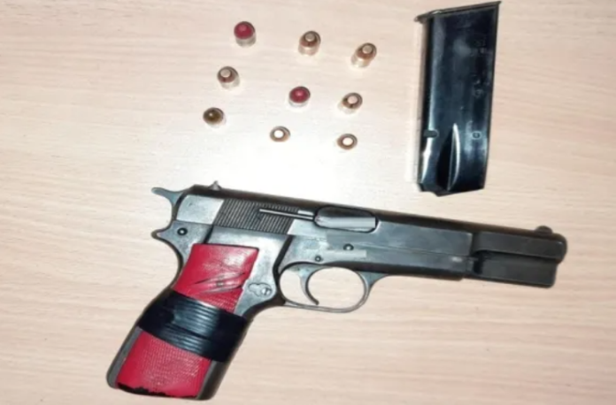 Al imputado se le realizó el cacheo de seguridad, donde los efectivos constataron que portaba en su cintura un arma de fuego tipo pistola, marca Browning, calibre 9 milímetros, con un cargador que contenía en su interior 8 proyectiles del mismo calibre y uno en recamara, sin el seguro de corredera colocado.