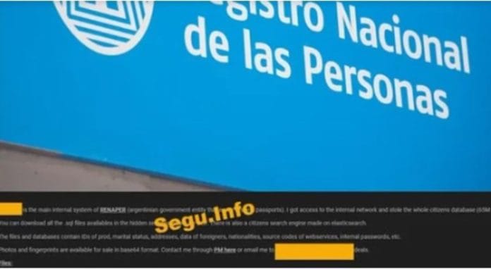La base de datos del Registro Nacional de las Personas (Renaper), fue hackeada y la información de unos 65 millones de ciudadanos corre riesgo. Los mismos delincuentes publicaron el material sustraído del organismo estatal.