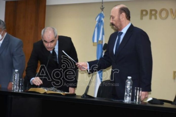 En la ceremonia, el mandatario procedió a realizar el juramento de ley en los términos del artículo 142 inciso 9 de la Constitución Provincial al nuevo funcionario del ministerio de la Producción y Ambiente, en presencia del escribano Mayor de Gobierno de la provincia de Formosa, Héctor Gallardo, a través del Decreto N° 164 del Poder Ejecutivo Provincial.