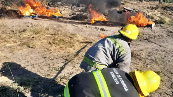 Personal de Bomberos incineró más de 400 litros de combustible en el predio del Depósito Judicial Policial, ubicado en la vera de la Ruta Provincial N° 2, a la altura de Monteagudo.