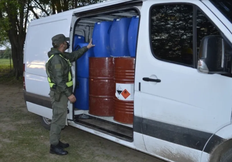 Al momento del registro, los funcionarios detectaron que los ocupantes transportaban tres tambores de 1.000 litros, dos tambores de 200 litros y 12 bidones de 50 litros con combustible.