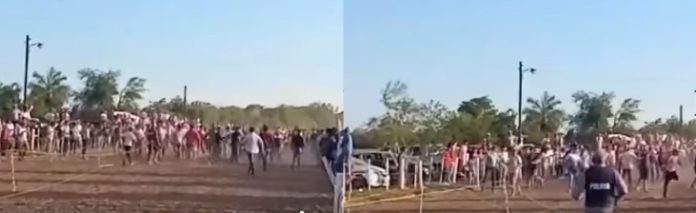 Ocurrió en las últimas horas de la tarde de este domingo en el campo hípico municipal “Los Pioneros” de la localidad, sobre Ruta Nacional 86, donde tras desarrollarse siete carreras de caballos, por motivos que son investigados, se inició una descomunal gresca entre el público presente dentro de la pista.