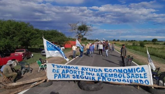 LAGUNA NAINECK: Productores agrarios del norte provincial iniciaron un corte del tránsito en la Ruta Nacional 86.