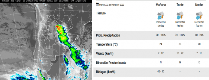 LAGUNA NAINECK: Pronóstico oficial e imagen satelital del Servicio Meteorológico Nacional para la jornada de este martes 22 de marzo de 2022.