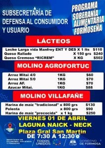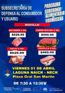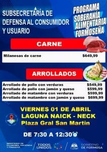 Desde las 7,30 hasta las 12.30 hs de este viernes se desarrollará en la Plaza San Martín el programa Soberanía Alimentaria Formoseña coordinada por la Subsecretaría de Defensa al Consumidor y Usuario de la provincia de Formosa.
