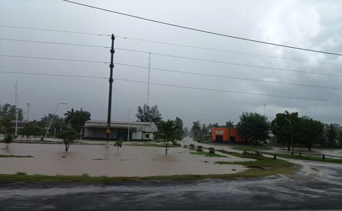 El temporal azotó poco después del amanecer de este domingo trayendo consigo ráfagas de viento y lluvia que inundó vastos sectores del centro urbano y colonias vecinas dejando a la localidad sin energía eléctrica y sin señal telefónica por casi 10 horas.