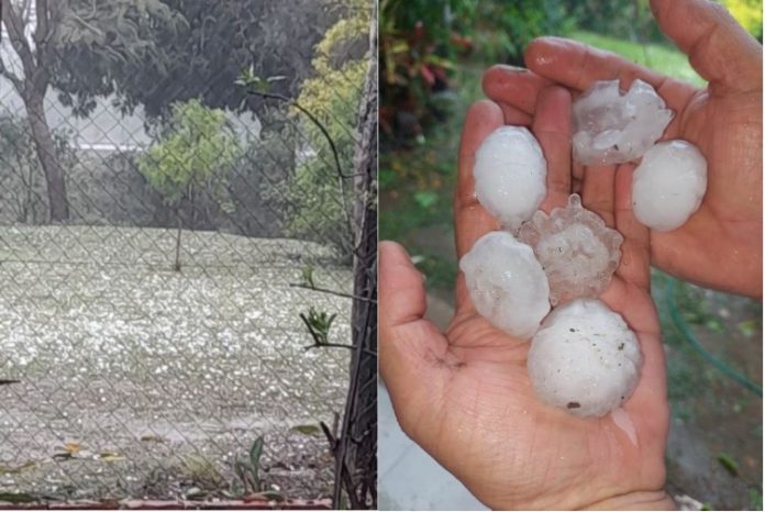 Un temporal de viento y lluvia acompañada de una intensa granizada se abatió sobre la localidad en las últimas horas de la tarde del sábado.