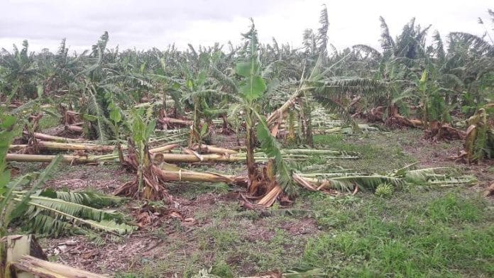 Ocurrió cerca de la medianoche del miércoles cuando el evento meteorológico se abatió sobre una franja comprendida entre las colonias Punta Guía, Ceibo 13 y el B° rural San Martín produciendo voladura de techos de viviendas, caída de postes de energía eléctrica, árboles, y daños en lotes de banano y especies hortícolas de unas 40 familias según datos aportados por referentes de la filial local de la Federación Agraria Argentina que recorrieron la zona.