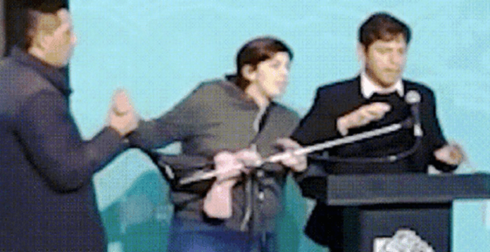 Una mujer irrumpió en el escenario durante un acto del gobernador de la Provincia de Buenos Aires, Axel Kicillof. Al respecto, el mandatario bonaerense advirtió que «podría pasarle lo mismo» que a la vicepresidenta Cristina Kirchner, en referencia al intento de atentado que sufrió el pasado 1° de septiembre.