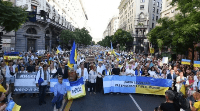 La marcha “Estamos con Ucrania” fue convocada por la Representación Central Ucrania en la República Argentina y contó con el apoyo de distintas organizaciones y dirigentes políticos.