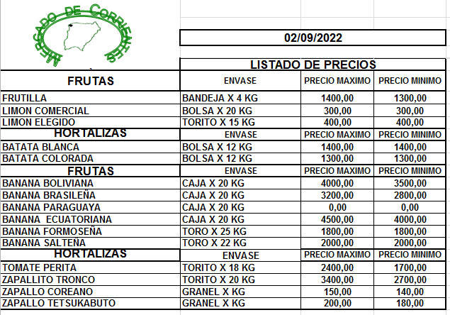 MERCADO DE CORRIENTES: Precios de FRUTAS y HORTALIZAS- 02/9/2022 5 septiembre, 2022 511 FacebookXPinterestWhatsApp