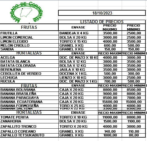 MERCADO DE CORRIENTES: Precios de FRUTAS y HORTALIZAS – 18/10/2023 19 octubre, 2023 276 FacebookXPinterestWhatsApp