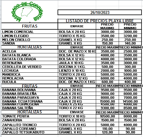 MERCADO DE CORRIENTES: Precios de FRUTAS y HORTALIZAS – 26/10/2023 27 octubre, 2023 3818 FacebookXPinterestWhatsApp