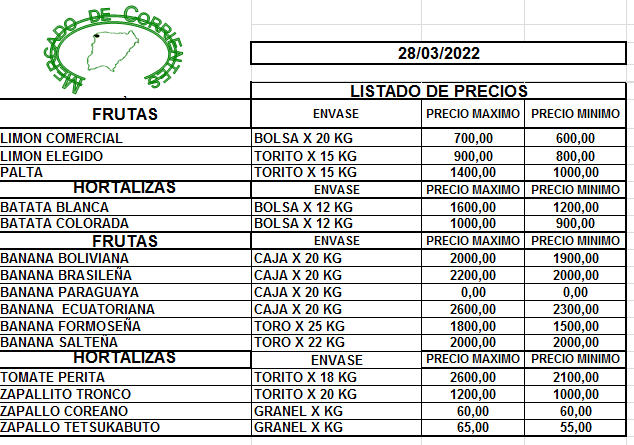MERCADO DE CORRIENTES: Precios de FRUTAS y HORTALIZAS – 28/3/2022 29 marzo, 2022 514 FacebookXPinterestWhatsApp