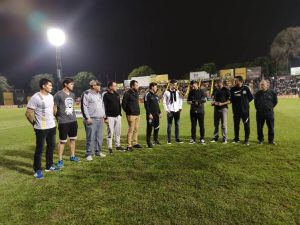Durante la presentación de ambos planteles en el campo de juego, sus jugadores portaron sendos carteles alusivos a la figura de Néstor Rolando “Cachito” Espinoza.