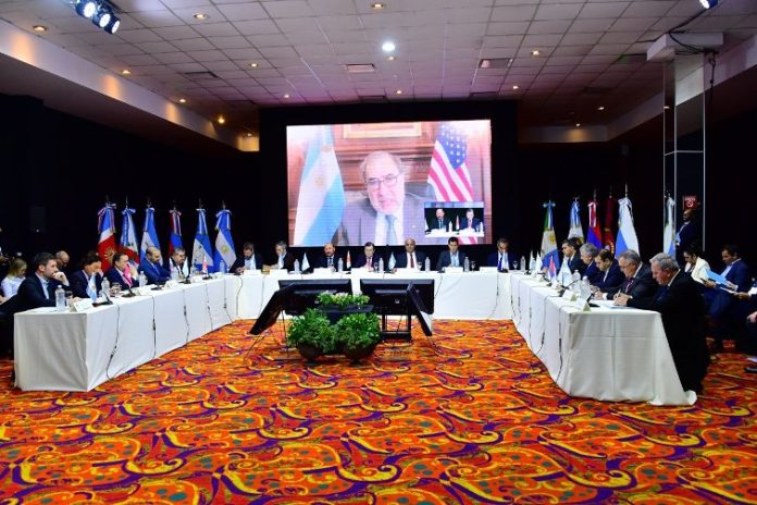 La agenda de trabajo inició con una videoconferencia con el embajador argentino en Estados Unidos de América, Jorge Argüello y equipo técnico, con el objetivo de tratar la misión a ese país.