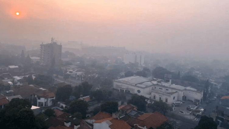 Una vasta zona de Paraguay, en especial su capital Asunción, se encontraba este lunes envuelta por una densa capa de humo causada por incendios forestales, que se presume puede provenir de Argentina o de focos de llamas en el país, informaron fuentes oficiales y privadas.