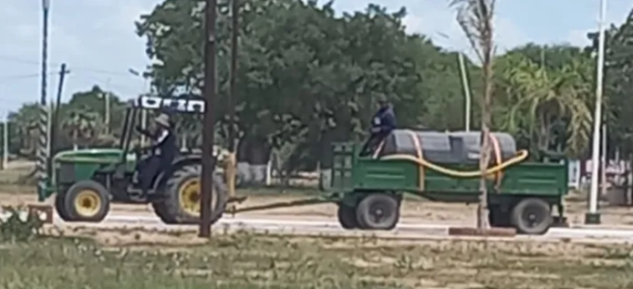En Pozo del Tigre un tractor de la municipalidad va y viene todo el día pero por supuesto no llega a cubrir ni minimamente lo que las familias necesitan para el consumo diario y el intendente, Alfredo Andrés De Yong, brilla por su ausencia y por su falta de gestiones ante un Gildo Insfrán al que le tiene miedo.
