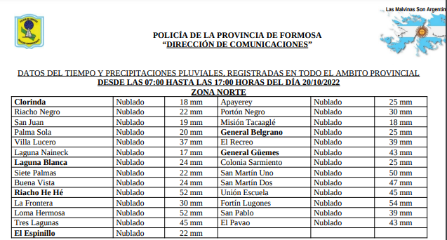 REGISTRO DE LLUVIA EN ZONA NORTE – JUEVES 20/10/2022