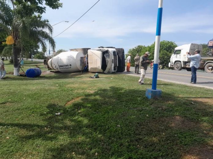 Ocurrió a media mañana de este jueves cuando la policía fue alertada a través de la línea 911 del vuelco de un camión tipo hormigonero sobre Ruta Provincial N° 2 a la altura del km 111, en el acceso sur de la localidad.
