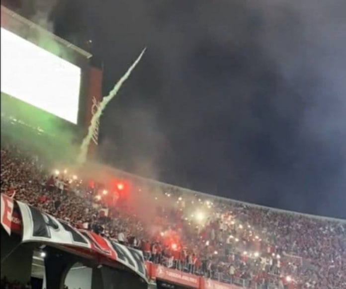 Por otro lado, mientras se disputaba el encuentro entre el equipo de Marcelo Gallardo y el de Sebastián Battaglia, desde la tribuna Sívori Alta, sector del Monumental que en los últimos partidos volvió a ser ocupado por la barra del Millonario, se lanzaron dos bengalas marinas que pudieron haber ocasionado una tragedia. Las mismas volaron rumbo a la tribuna Centenario Alta, popular que se encuentra justo en frente y que es territorio de la facción disidente, La Banda del Oeste.