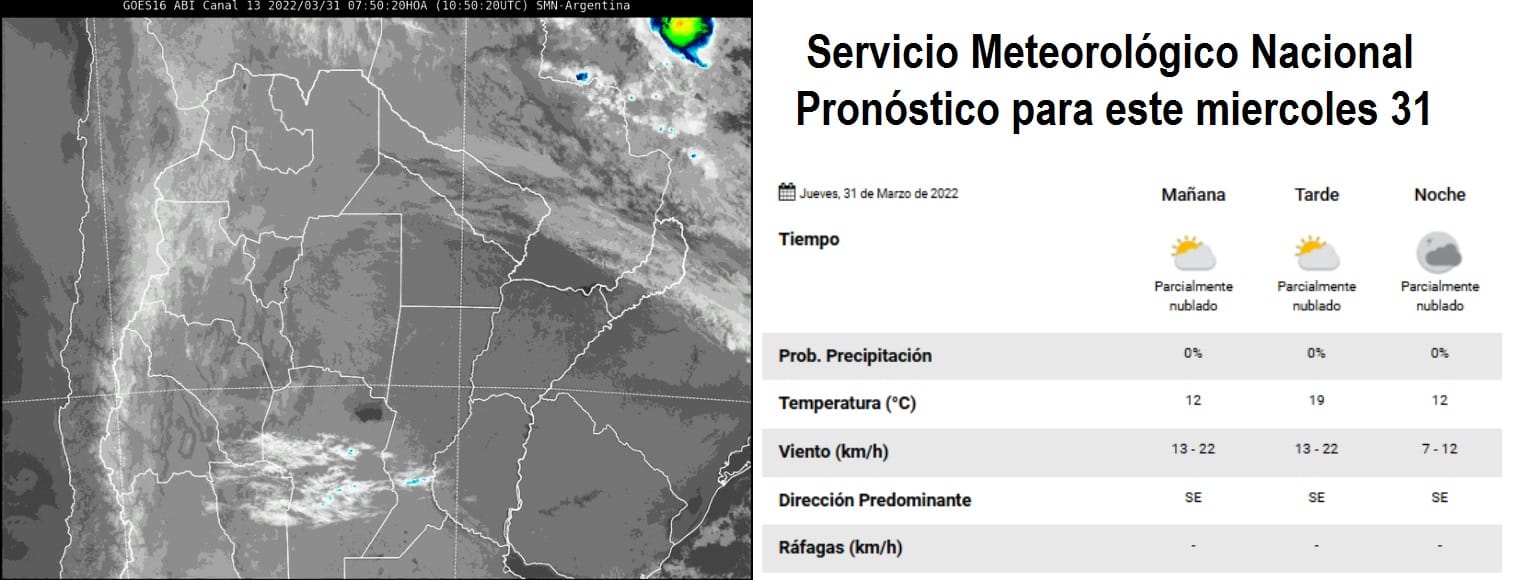 SMN: Imagen satelital zona norte de Argentina y pronóstico para el jueves 31. 31 marzo, 2022 563 FacebookXPinterestWhatsApp