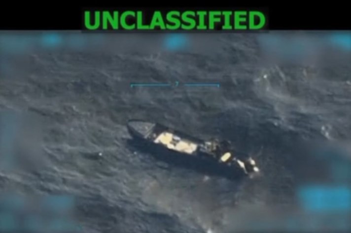 El mensaje de Trump estuvo acompañado por un corto video en el que se ve una lancha de grandes dimensiones en alta mar, inmóvil, y luego una explosión que la destruye completamente. En la grabación, que parece ser de vigilancia, se observa al menos una persona dentro de la embarcación.