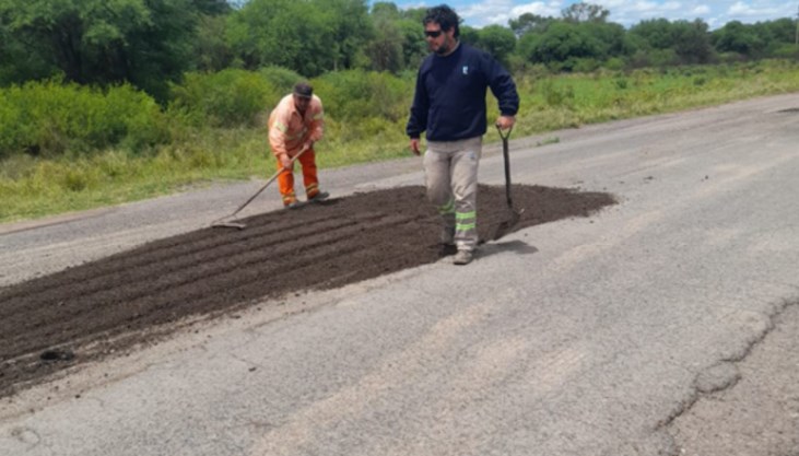 Paralelamente, se realizan trabajos de bacheo con RAP, aplicando material recuperado en los sectores donde se detectaron baches y daños producto de lluvias y anegamientos. Antes del relleno, se ejecutan saneamientos y limpieza del área intervenida, lo que permite asegurar una correcta compactación y prolongar la vida útil de la reparación.