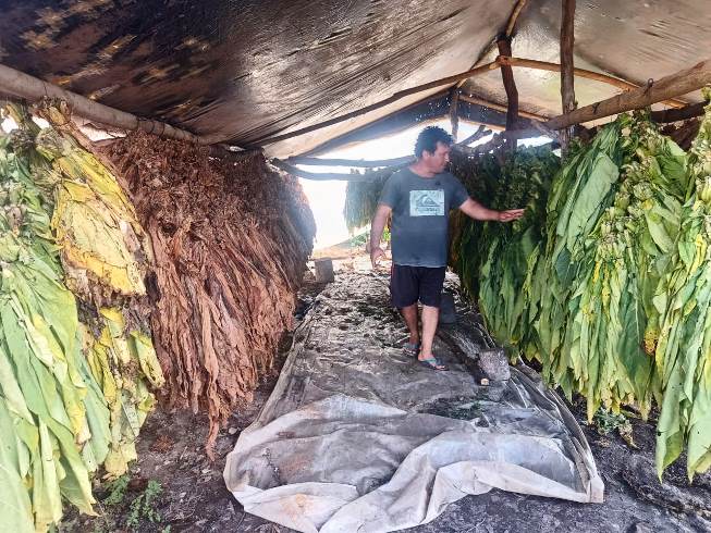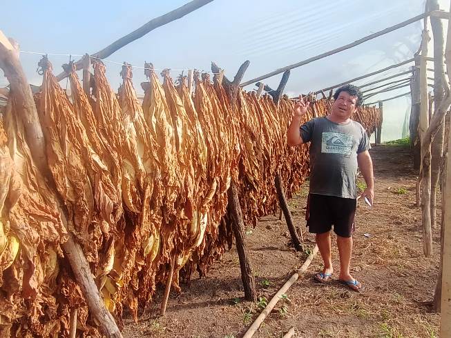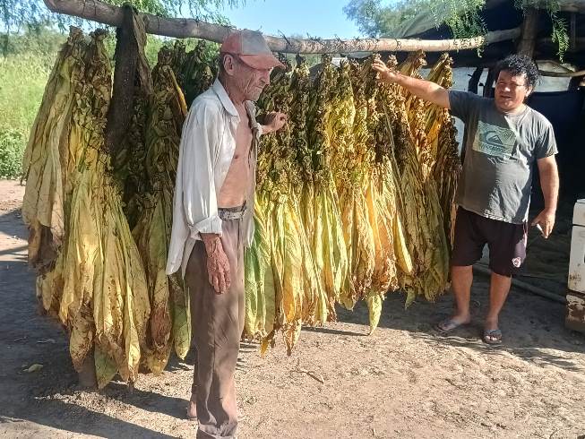 Los productores explicaron además que el año pasado recibieron la visita de un ingeniero que prometió aportar los elementos necesarios para montar los secaderos. Sin embargo, tras un tiempo, y luego de varias insistencias, solo les entregó un rollo de plástico, con el cual improvisaron estructuras precarias para el secado del tabaco. A pesar de estas limitaciones, la cosecha avanza y ya cuentan con algunos fardos listos para ser comercializados, aunque aún no han logrado conseguir compradores.